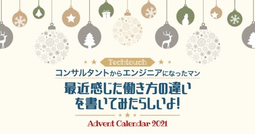 本稿では、2ヶ月前まで経営コンサルタントとして働いていた私が、エンジニアとして働く中で感じたエンジニアとコンサルタントの仕事の違いについてお伝えできればと思います! 働き方の側面にフォーカスさせて頂くため、一部の内容は「エンジニアとコンサル…